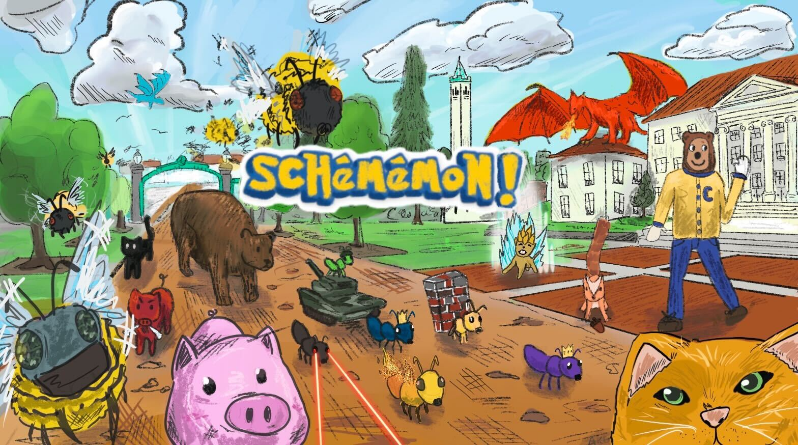 Welcome to the Cal Stadium, Schémémon brainer! What's a brainer? A UC Berkeley student: a mega-genius. Here, you challenge other brainers and their Schémémon to wrangle them!